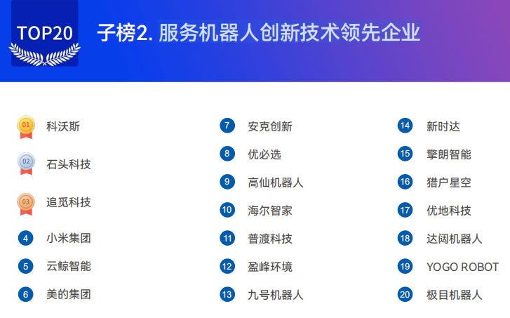 2025服務機器人創新技術領先企業top20
