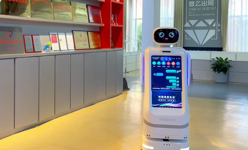 機器人配合3D視覺,看到來訪人員會主動打招呼,啟動智能迎賓;由自身攜帶的蓄電池,實現(xiàn)識別和躲避障礙物自主行走;語音講解,輔以圖片、視頻等補充介紹,使內容更生動。